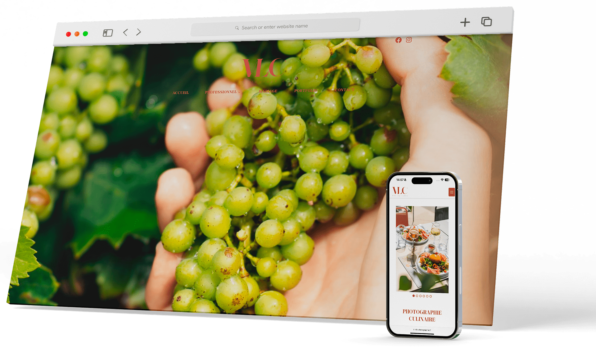 Un design design et épuré qui permet à VLC Photographie de mettre en avant ses prestations et portfolio.