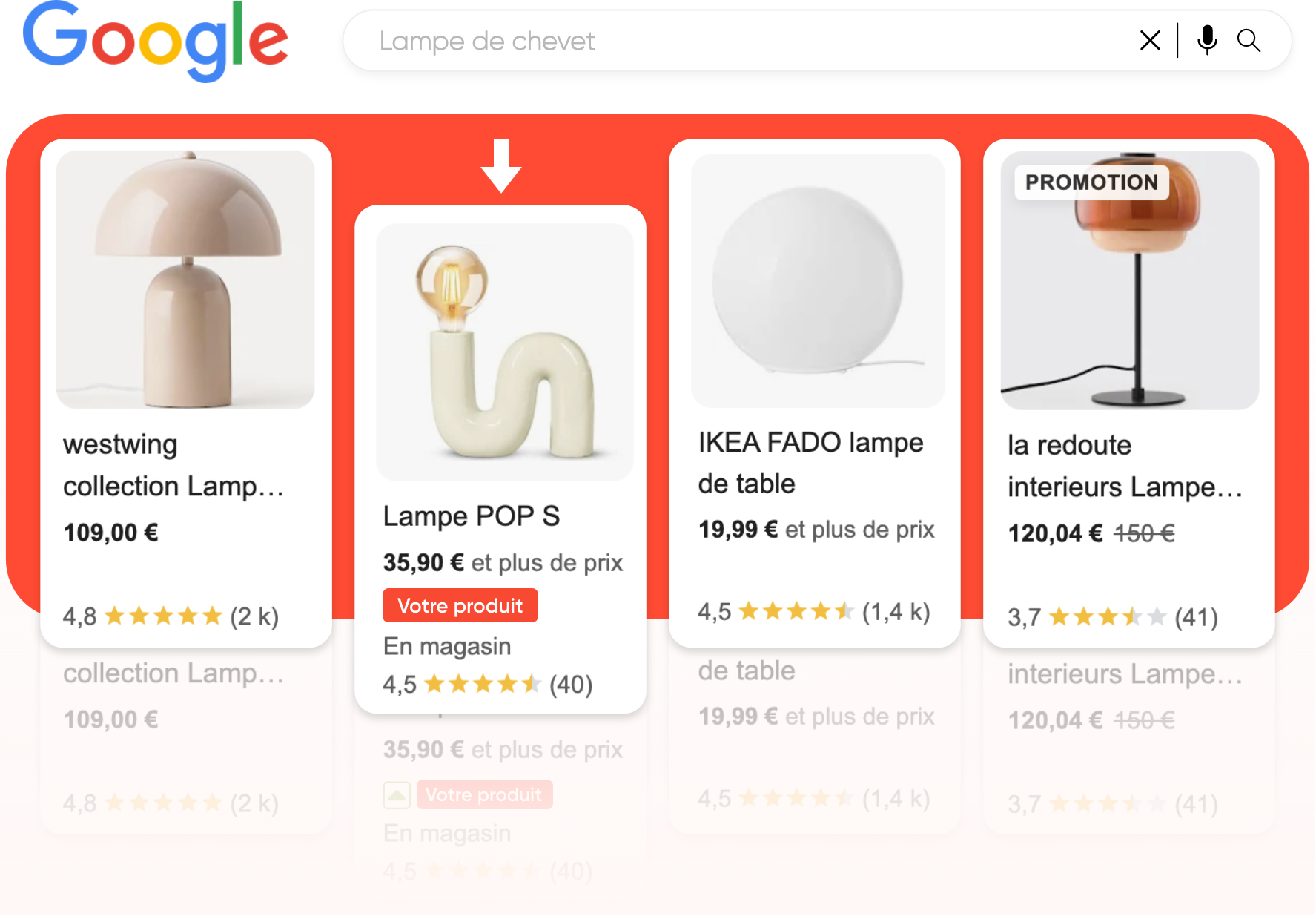 • Connexion via API à Google Merchant Center, permettant la diffusion automatique de vos produits sur Google Shopping