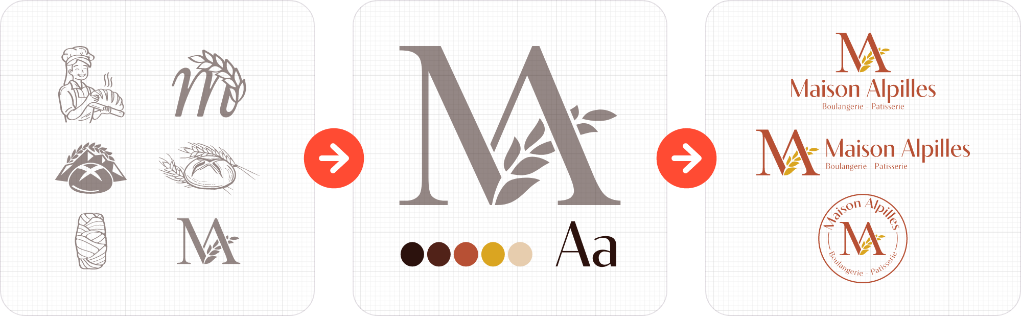 Sa création commence par une phase d’échange et d’analyse afin de définir une direction claire et stratégique. Plusieurs pistes créatives sont ensuite proposées, puis affinées jusqu’à obtenir un logo final durable, lisible et adaptable à tous les supports.